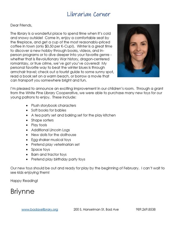 Bad Axe Area District Library Newsletter